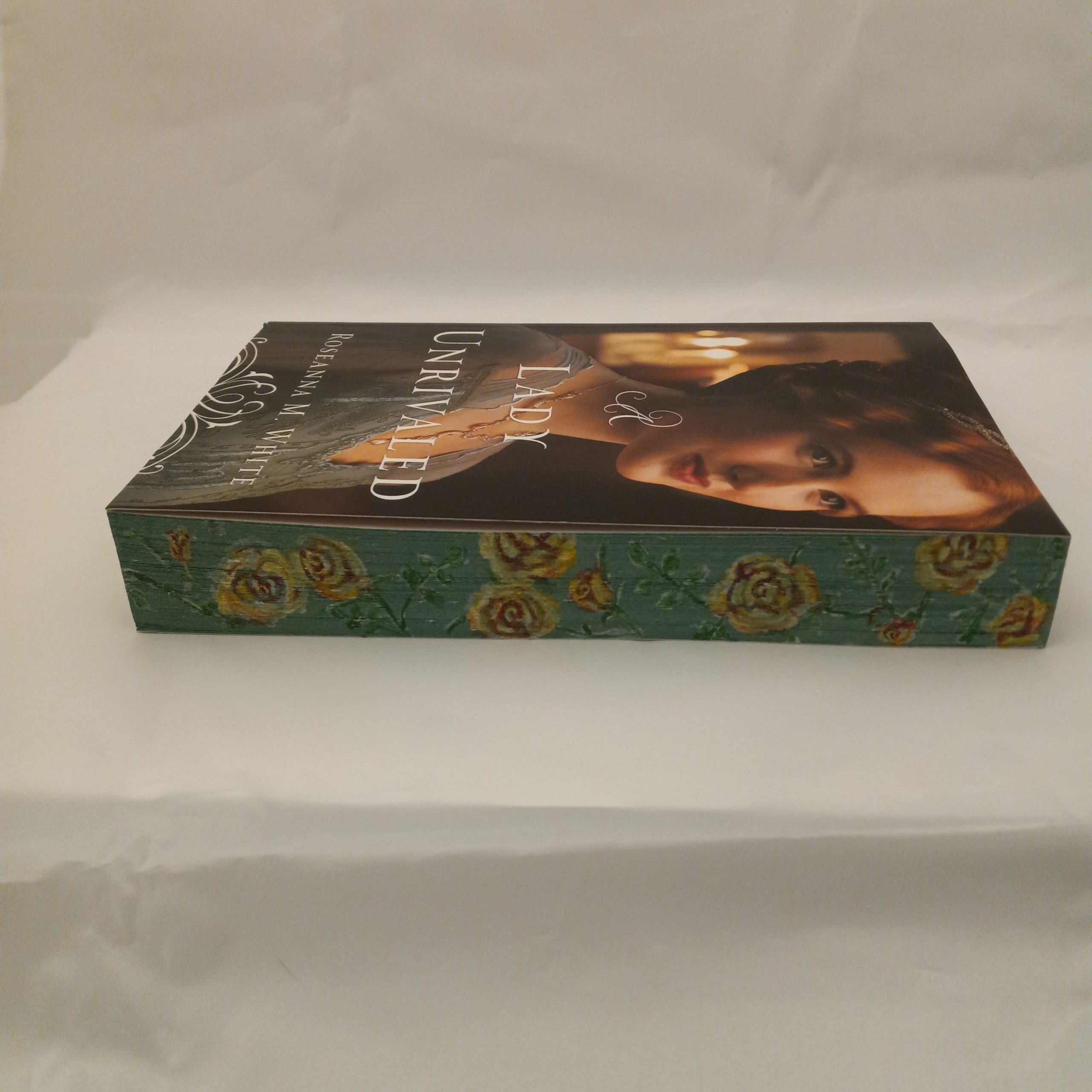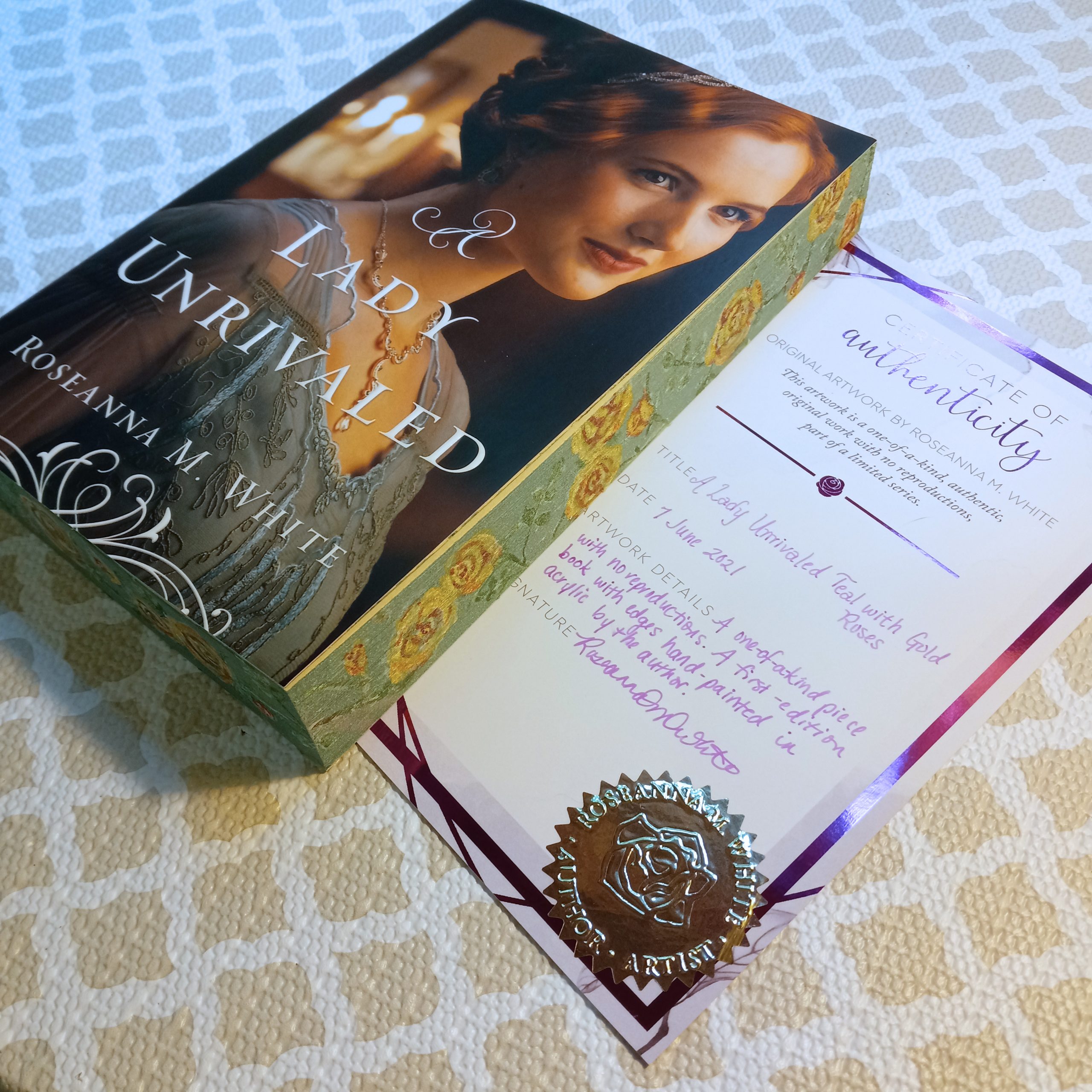 This edition of A Lady Unrivaled is painted a medium teal with gold roses that have deep red accents. Paint has pearly shimmer that is even more beautiful in person than in images. Finished on June 7, 2021. FIRST in A Lady Unrivaled series.